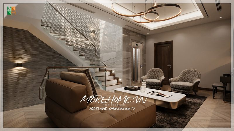 Thiết kế nội thất phòng khách với gam màu tối nhưng ấm áp và dễ chịu