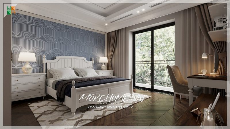 Giường ngủ gỗ tự nhiên màu trắng tân cổ điển đạt thẩm mỹ cao thu hút cũng là nội thất quyết định tới giấc ngủ cho gia chủ.