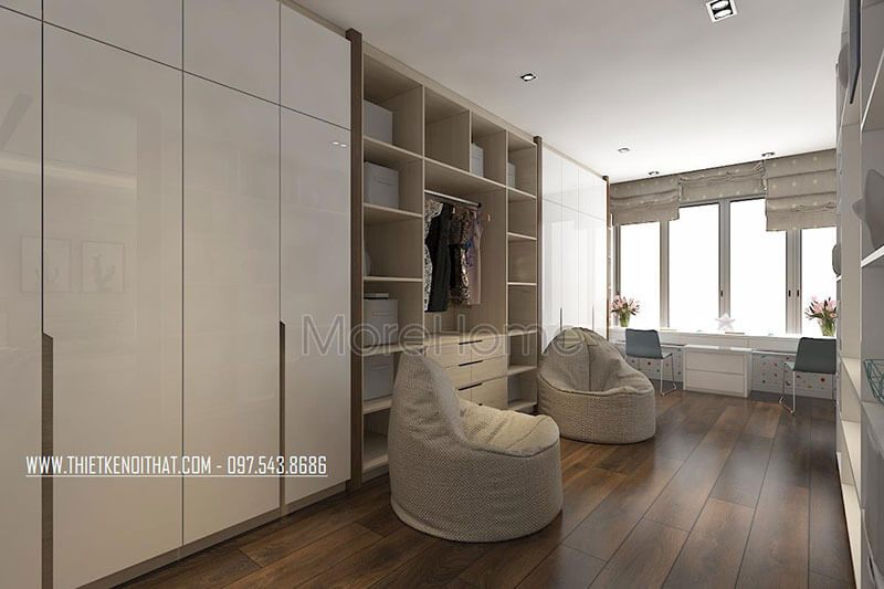 Tủ quần áo gỗ công nghiệp hiện đại với thiết kế kịch trần đem lại sự tiện dụng và nhiều tính năng.