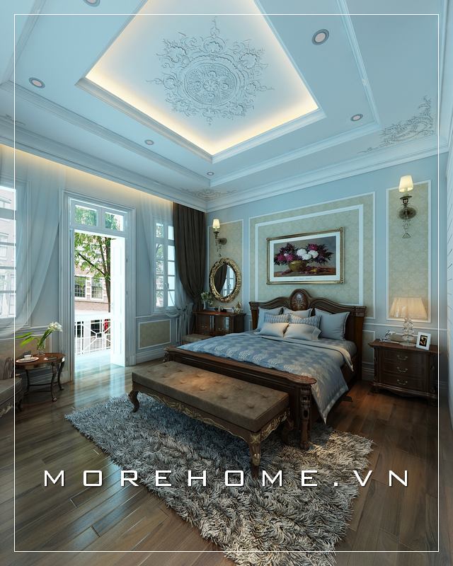 Mẫu thiết kế giường ngủ biệt thự đẹp phong cách tân cổ điển
